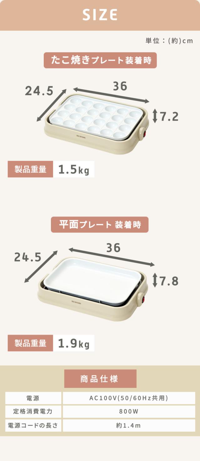 たこ焼きプレート装着時:幅約36×奥行約24.5×高さ約7.2