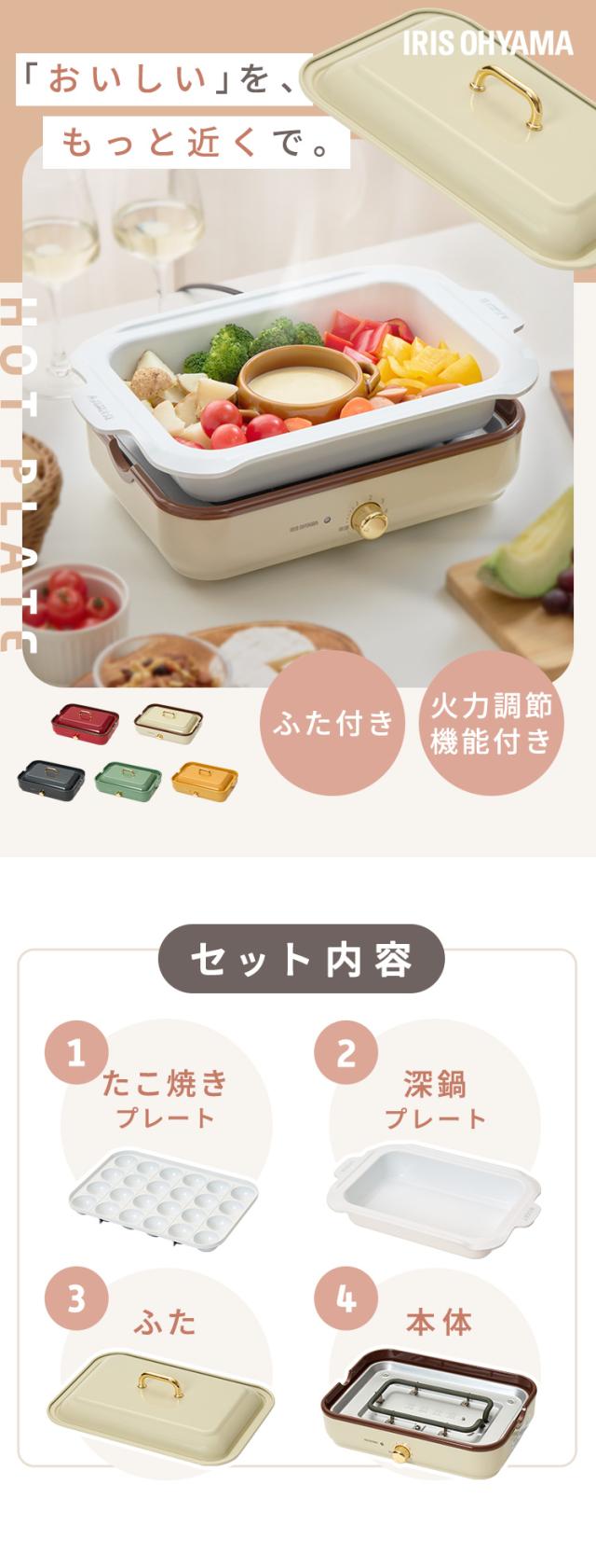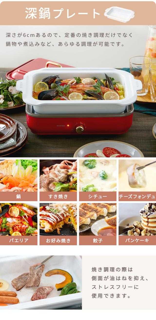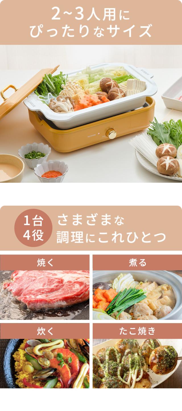 ホットプレート PHP-1002TC 鍋 たこ焼きプレート おしゃれ 2WAY アイリスオーヤマ セラミック 着脱式 1000W 最大250℃ 深鍋 ふた付き かわいい ギフト プレゼント コンパクト 小型 焼き肉 おでん 卓上 温度調節 保温