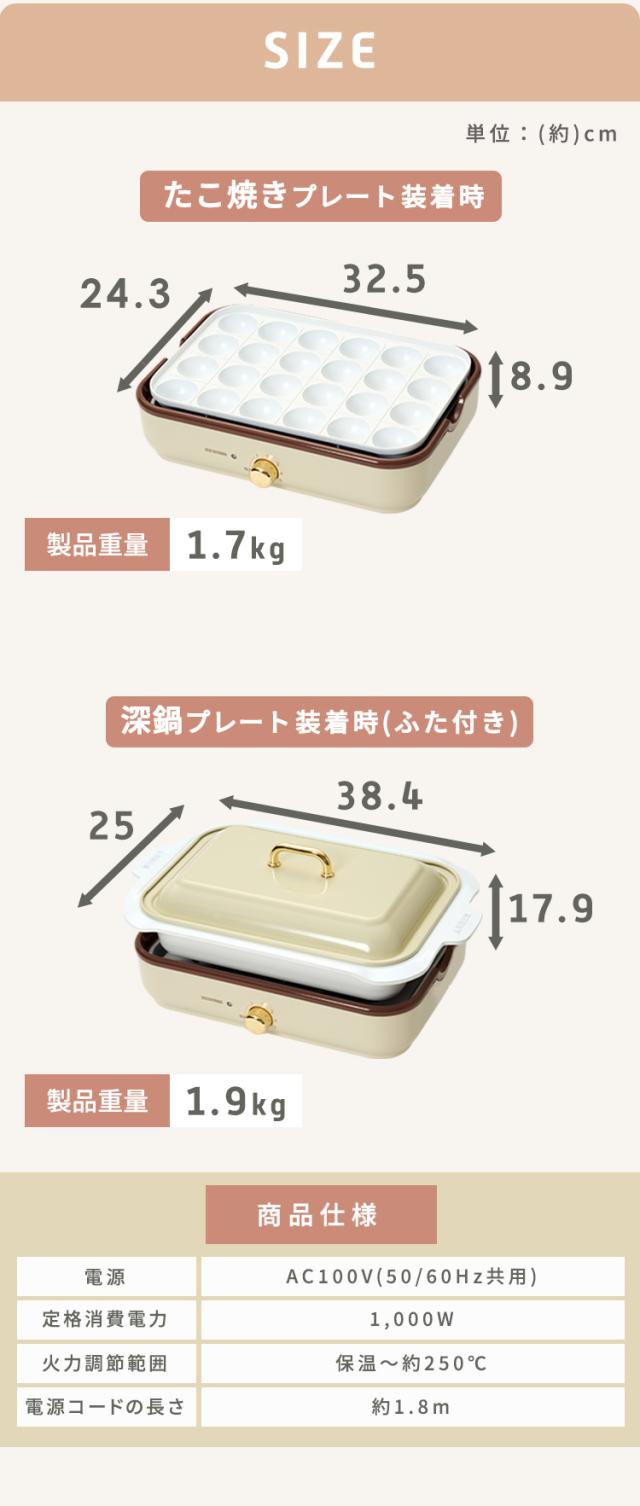 たこ焼きプレート装着時:幅約32.5×奥行約24.3×高さ約8.9