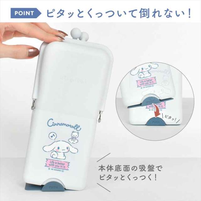 「エアピタ」ペンケースにサンリオキャラクターズのデザインが登場!空気のチカラで机にピタッと吸着し倒れにくい設計◎大きく開くがま口タイプで、中が見やすく出し入れもラクラク!スマホを立てかけてスマホスタンドとしても使えます。大容量サイズなので、ペンや文房具はもちろん、洗面用具や化粧品ポーチにも◎子供から大人まで持ちやすい落ち着いた色味で、プレゼントにもオススメです♪