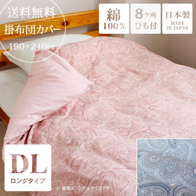 掛け布団カバー ダブル ロング 綿100% ペイズリー柄 おしゃれ カバー 日本製 190×210 8ヶ所ひも付き