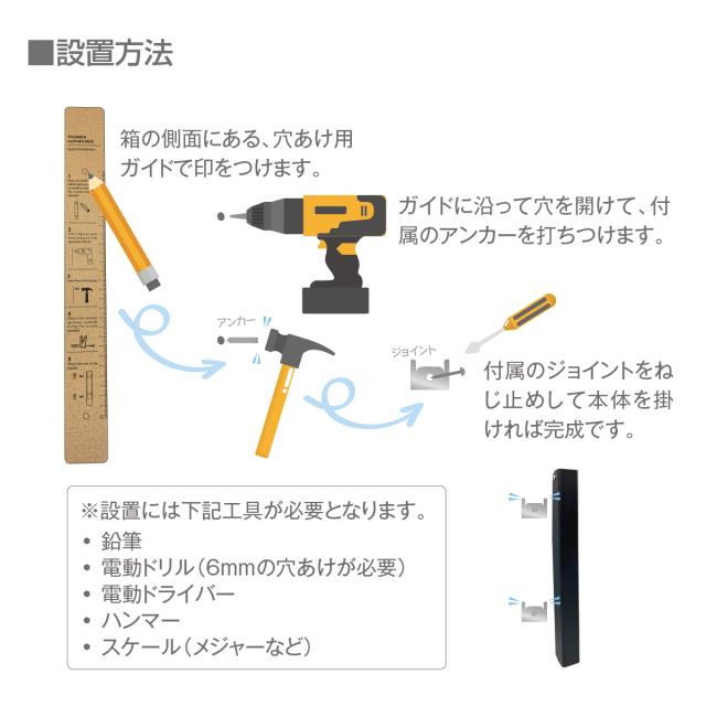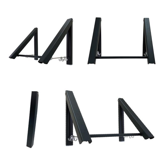 壁に取り付けるだけなので、何もない所にハンガーラックが作れます。使わない時は折りたためて邪魔になりません。