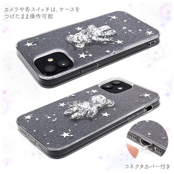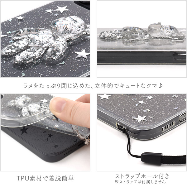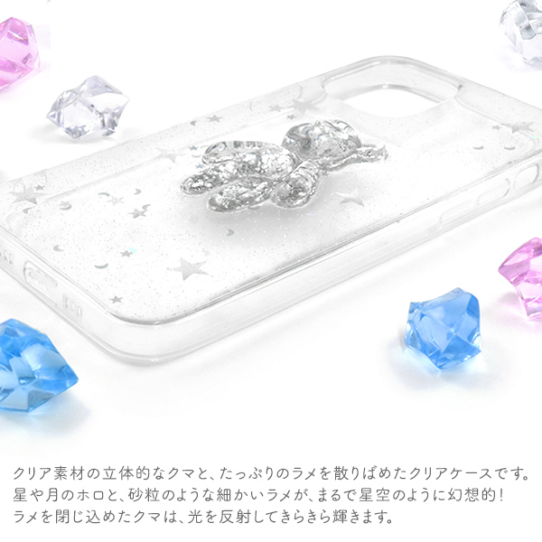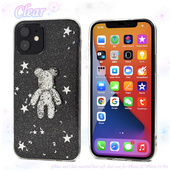 スマートフォンケース iPhone12 iPhone12Pro用 きらきらラメ ソフトクリアケース くま クマ かわいい 装着簡単 スマホケース ファンシー バックカバー 背面保護 保護カバー スマホカバー SoftBank au docomo オシャレ お洒落 おしゃれ ストラップホール付き 可愛い