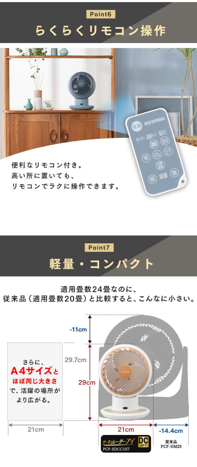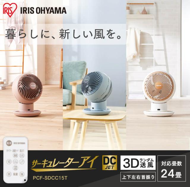 サーキュレーター 衣類乾燥 dcモーター アイリスオーヤマ * WOOZOO PCF-SDCC15T[s] 24畳 静音 首振り 扇風機 冷房 部屋干し 換気 梅雨対策 エアコン併用 おしゃれ 省エネ DC 大風量 リモコン付 3D送風 サーキュレーターアイ DC JET 一人暮らし
