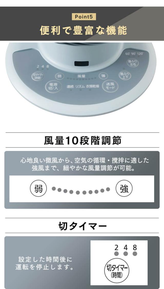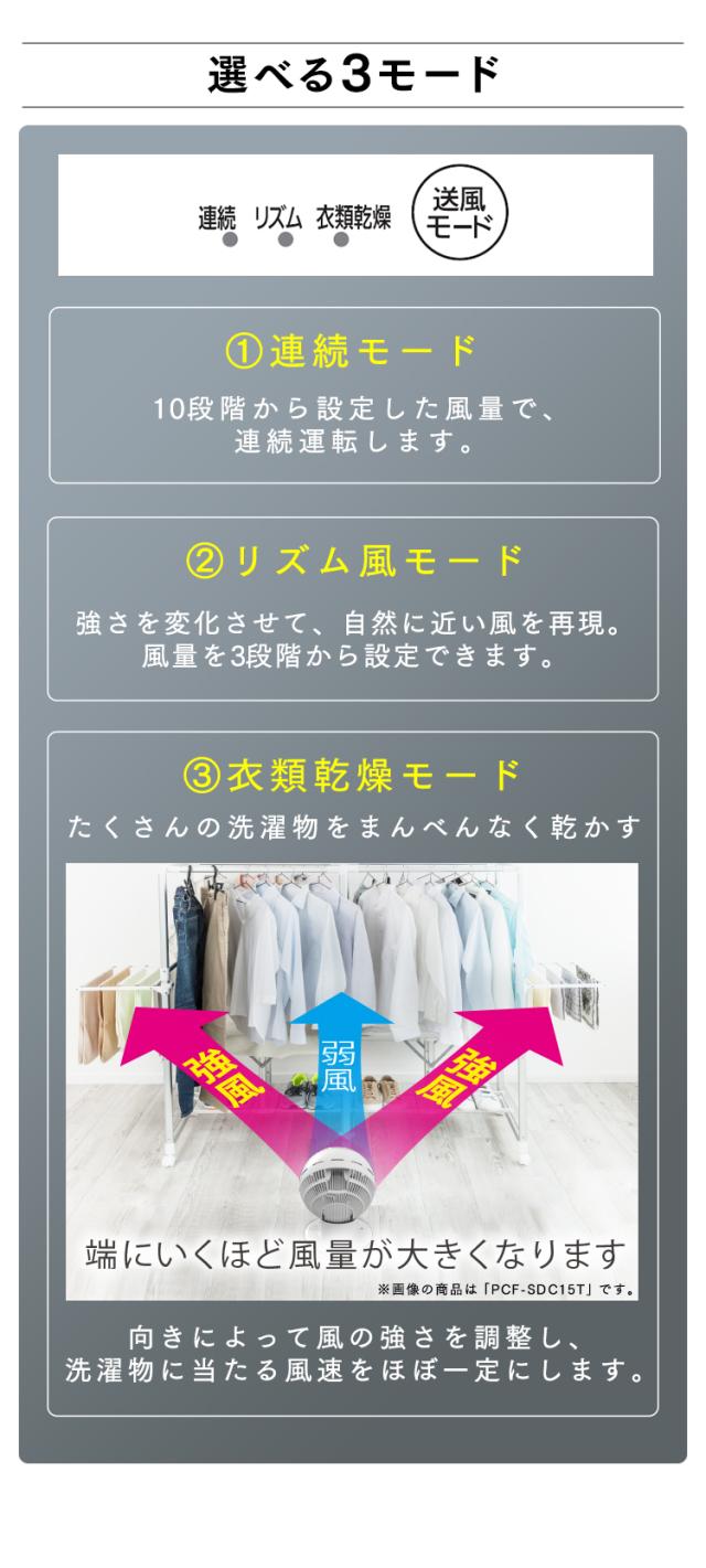 リズム:風量を3段階から設定。強さを変化させて、自然に近い風を再現します