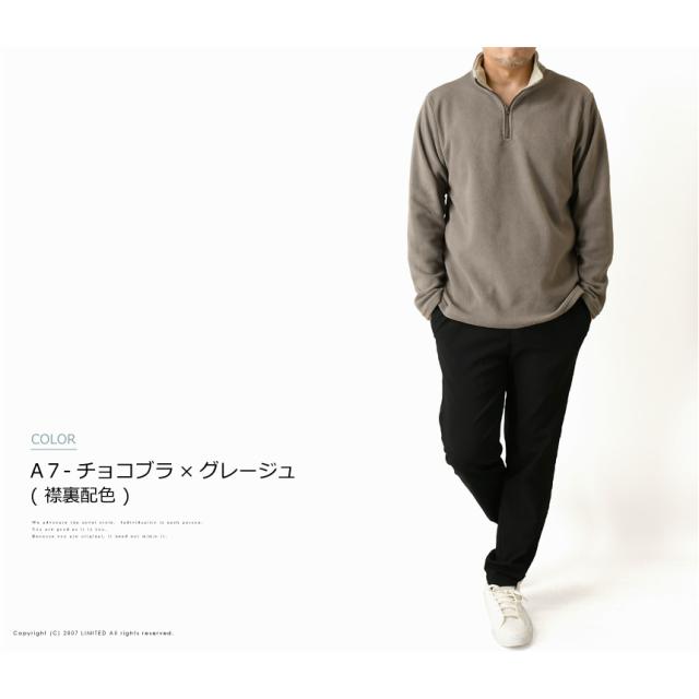 フリース カットソー メンズ 暖かい 裏起毛 トレーナー ハーフジップ ゴルフウェア 冬 アウトドア ZIP 【RQ0714】 送料無料 通販A3