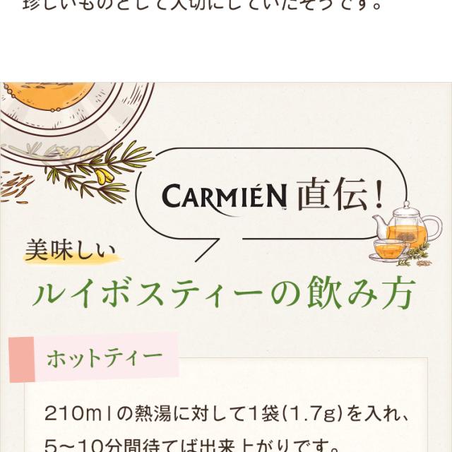 ルイボスのメーカーとして有名な南アフリカのカーミエン茶葉を使用しています。