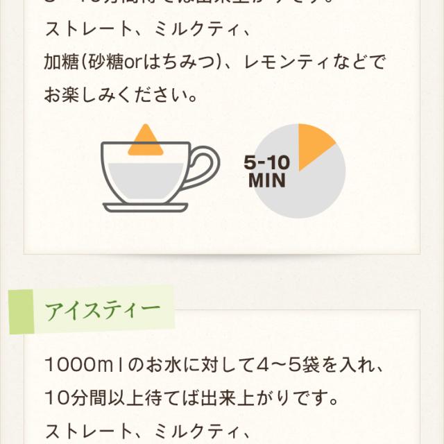 ●熱湯によるやけどにご注意ください ●開封後はなるべくお早めにお召し上がりください ●1度使用したティーバッグの再利用はお控えください ●作ったお茶はなるべくその日のうちにお召し上がりください ●直射日光や高温多湿を避けて保存してください |