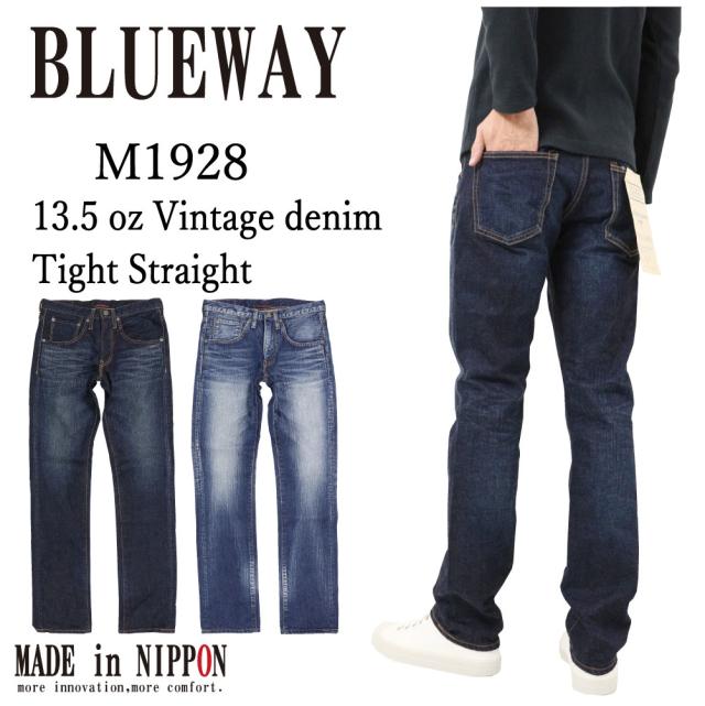 BLUEWAY ブルーウェイ M1928 ジーンズ タイト ストレート 13.5oz ヴィンテージ デニム 4450 4654 メンズ 日本製 綿100% こだわりジーンズ