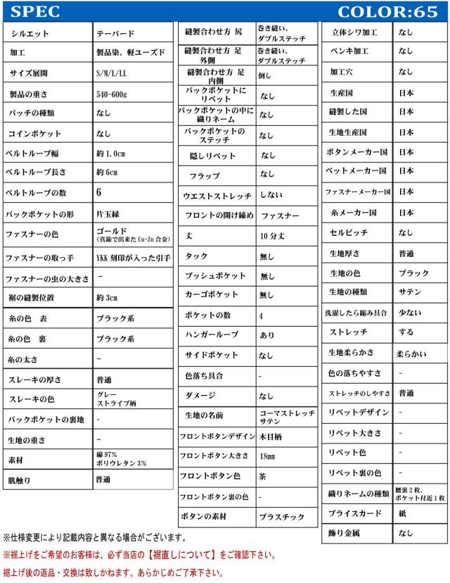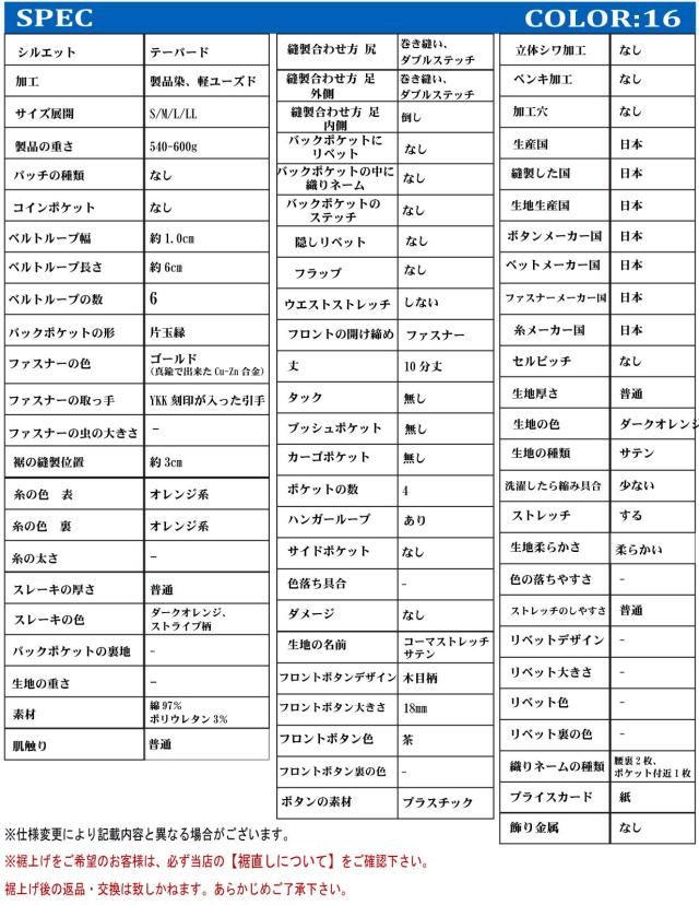 ※ 裾上げサービスは無料でさせて頂きますが裾上げ処理をしたパンツは、