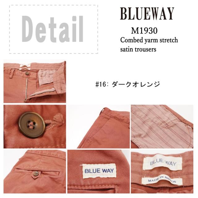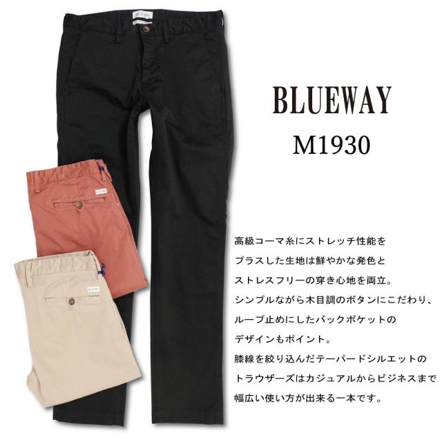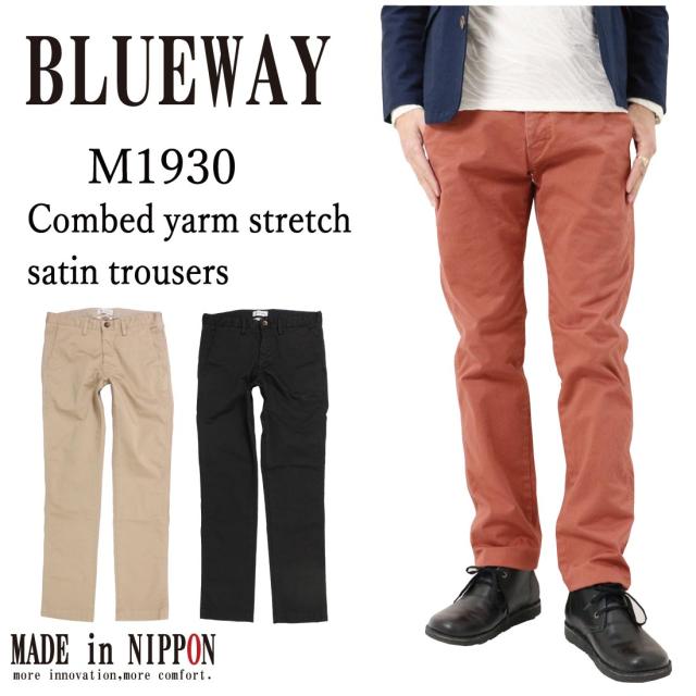 BLUEWAY ブルーウェイ M1930 トラウザー パンツ ストレッチ テーパード サテン 16 51 65 メンズ 日本製 こだわりジーンズ