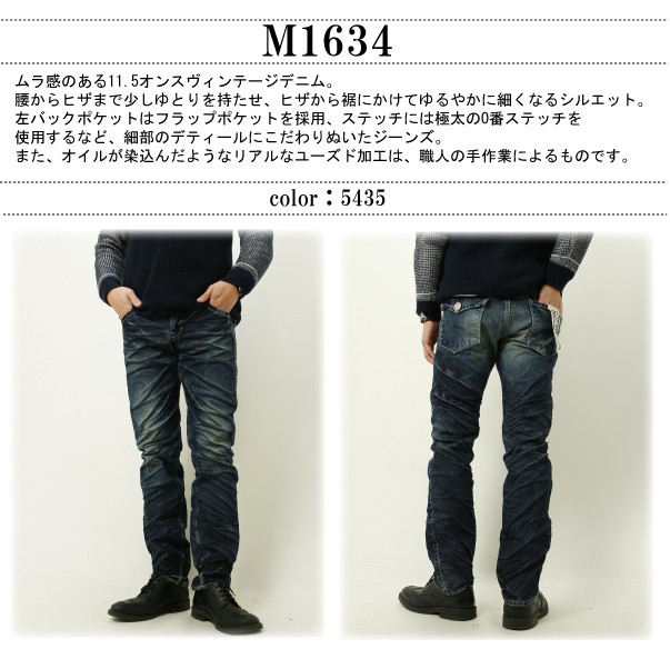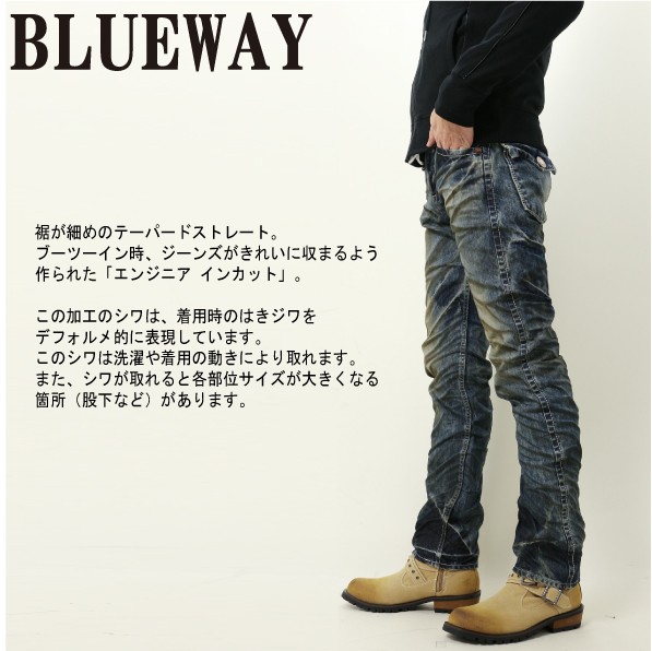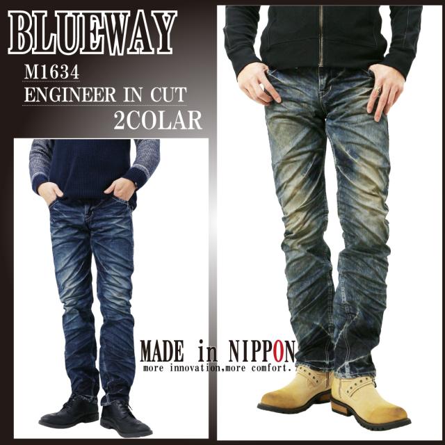 BLUEWAY ブルーウェイ ジーンズ M1634 エンジニア インカット テーパードストレート デニム 5435 5450 メンズ 日本製 こだわりジーンズ