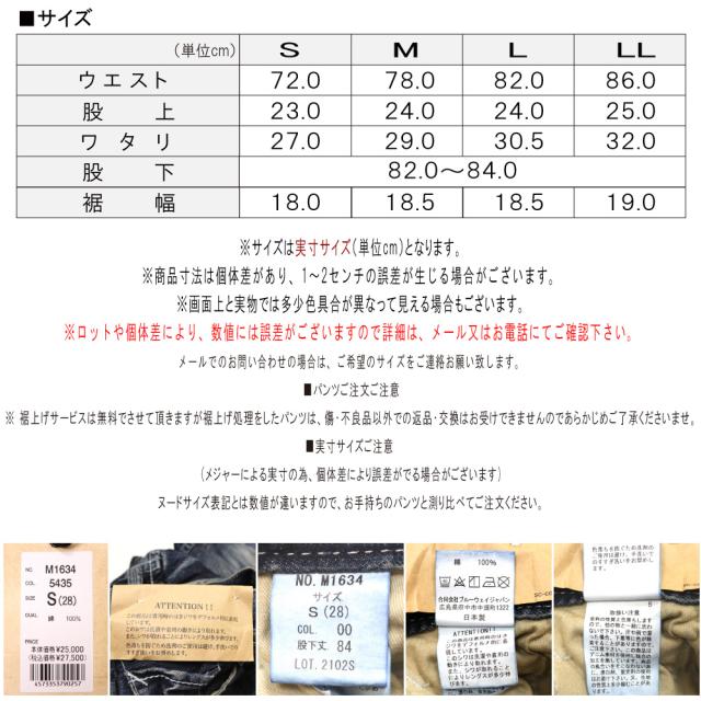※ 裾上げサービスは無料でさせて頂きますが裾上げ処理をしたパンツは、