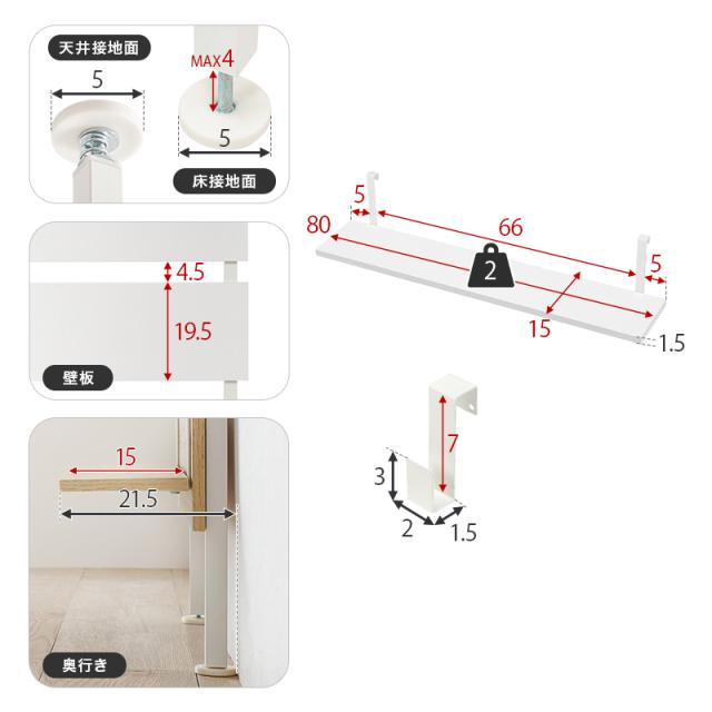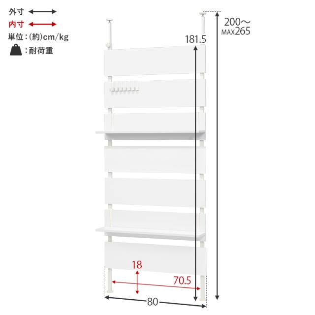 【商品サイズ(約)】幅80×奥行21.5×高さ200〜265cm