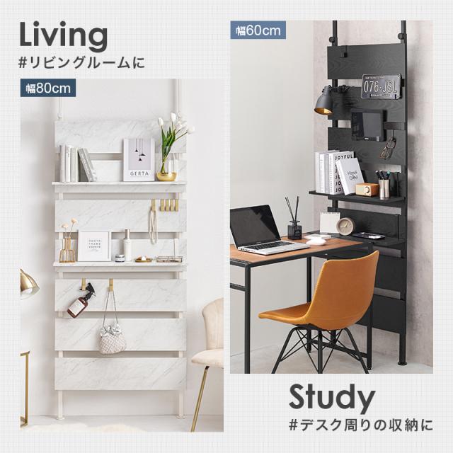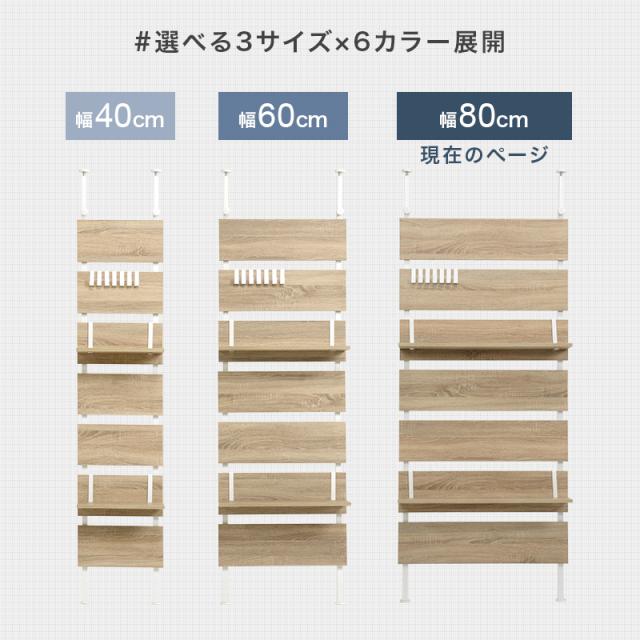 つっぱり ラック 幅80 おしゃれ 北欧 収納 棚 壁 高さ調整 パーテーション 木製 間仕切り ウォールシェルフ 壁面収納 パントリ スリム ハング 突っ張り ラック つっぱり 棚 壁 おしゃれ 北欧 段差
