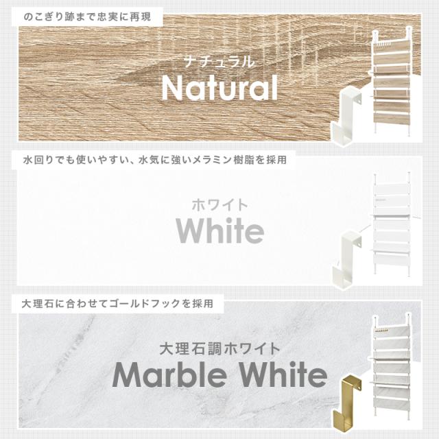 カラーは北欧風インテリアやホワイトインテリア、韓国インテリアにぴったりな「ホワイト」「大理石調ホワイト」「ナチュラル」