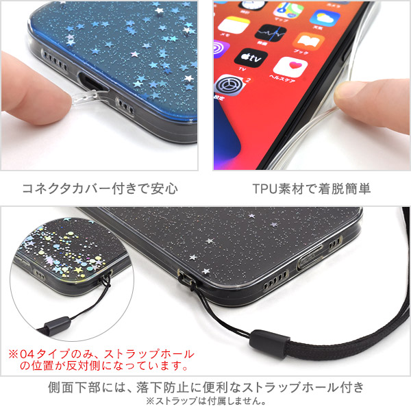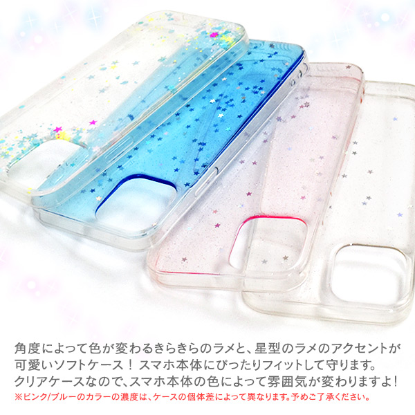 スマートフォンケース iPhone12 iPhone12Pro用 カラフル ラメ ソフトクリアケース 装着簡単 キラキラ ストラップホール付き 携帯ケース スマホカバー 背面保護 バックカバー スマホケース シンプル きらきら フェミニン 可愛い かわいい 華やか SoftBank au docomo