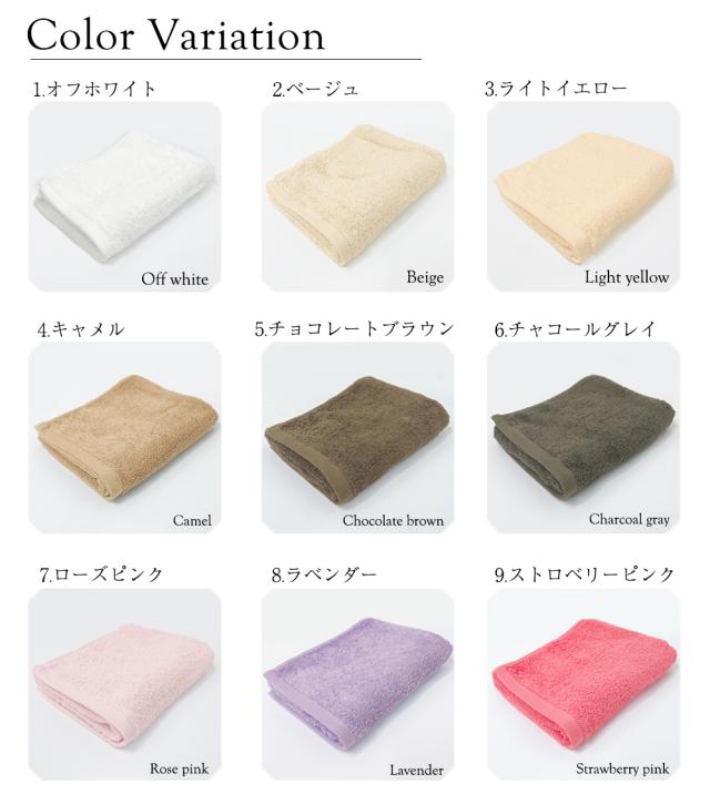 現在スーピマコットンホテルタイプシリーズは16色。数量限定で特別価格にてご提供!使った瞬間に感じる上質感。ご家庭で高級ホテルにいるような上質で贅沢な心地よさを味わって頂く為に。抜群な吸水性と、ふっくらやわら感がクセになり、いつもいつも使いたくなるタオルです。