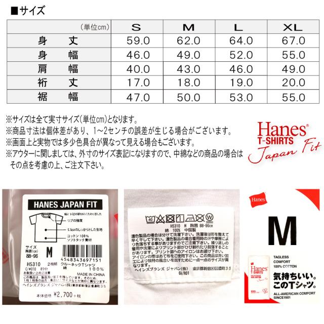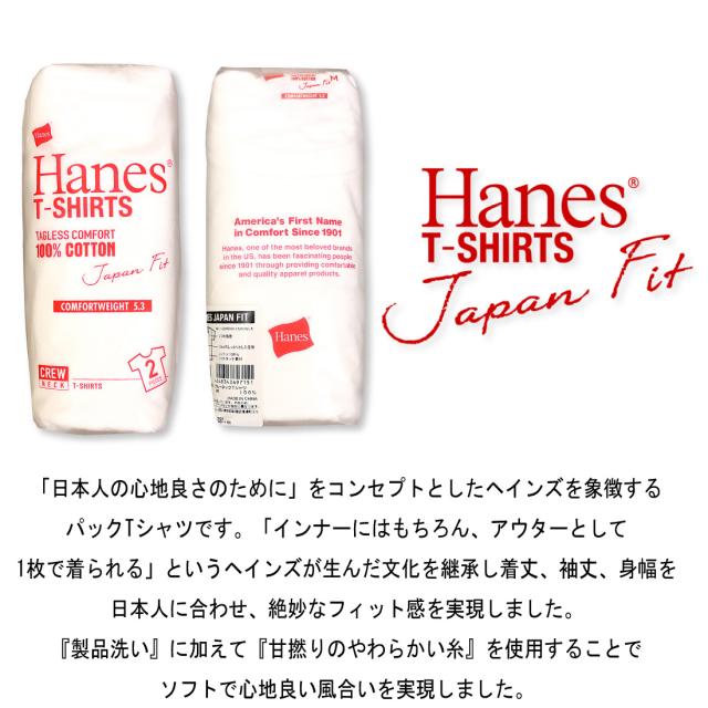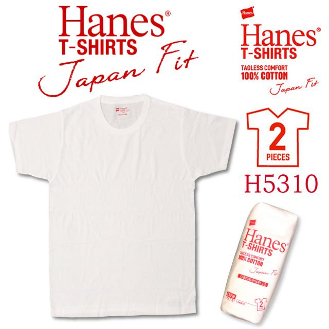Hanes ヘインズ Tシャツ パックT Tシャツ H5310 ジャパンフィット メンズ レディース ユニセックス 半袖 無地 5.3オンス クルーネック 2枚組