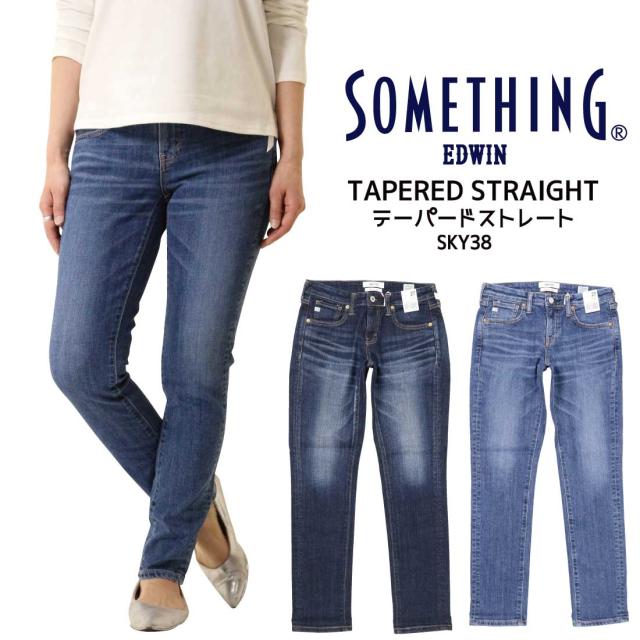 SOMETHING サムシング テーパード ストレート デニム パンツ ストレッチ SKY38 レディース ボトムス 226 246 送料無料