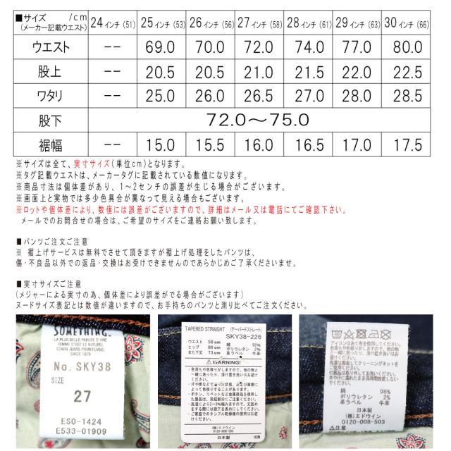 (ヌードサイズ表記とは数値が違いますので、お手持ちのパンツと測り比べてご注文ください。)