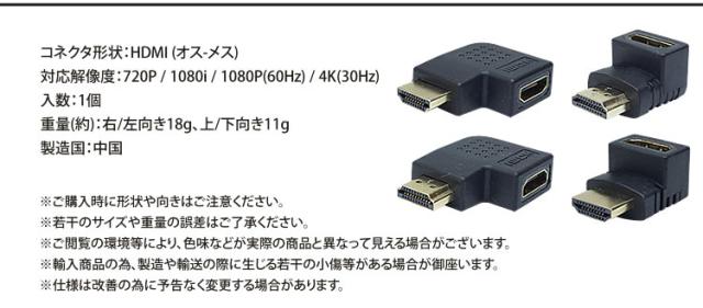 HDMI 変換 アダプタ L型 L字型 方向変換 上向き 下向き 右向き 左向き HDMI オス メス コネクタ 向き変換 PR-HDT001【メール便 送料無料】