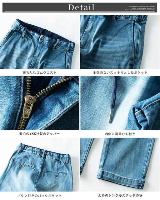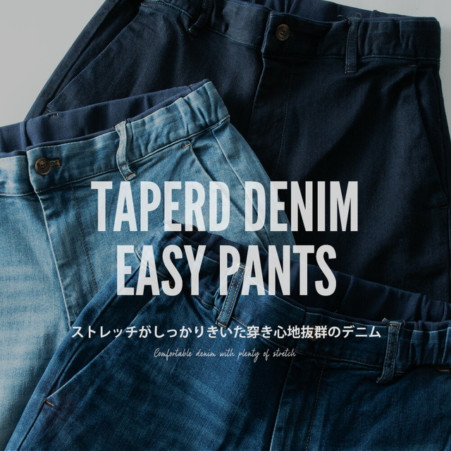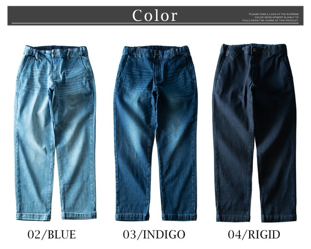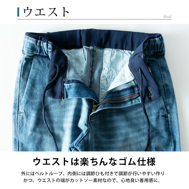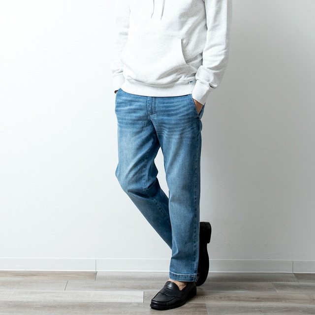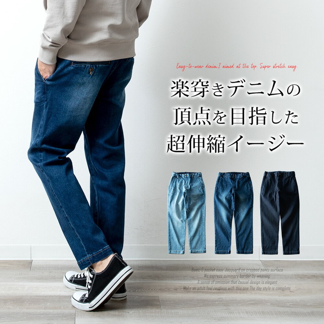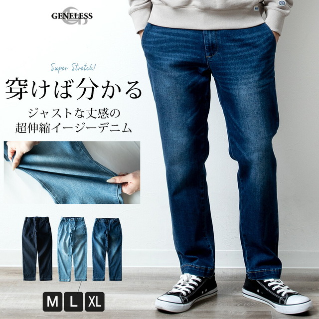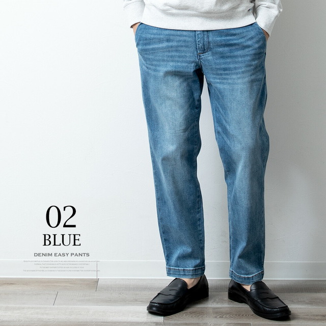 デニムパンツ メンズ テーパード デニム パンツ ストレッチ イージーパンツ ロングパンツ アンクルパンツ ストレート L ワイド M 裏地無 紺 ネイビー ジーンズ ジーパン XL ブルー LL シンプル 無地 全3色