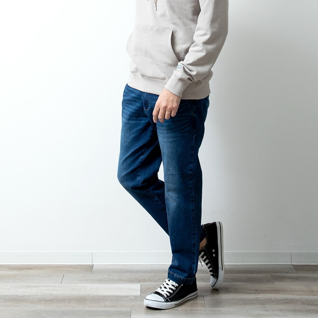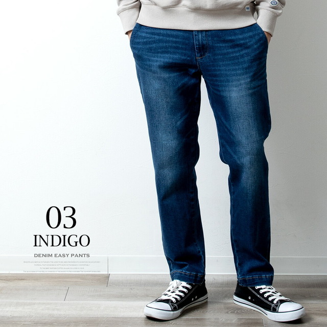 デニムパンツ メンズ テーパード デニム パンツ ストレッチ イージーパンツ ロングパンツ アンクルパンツ ストレート L ワイド M 裏地無 紺 ネイビー ジーンズ ジーパン XL ブルー LL シンプル 無地 全3色 綿 インディゴ ストリート