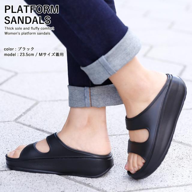 厚底サンダル レディース メンズ 軽量 グミ足感 厚底 EVAサンダル おしゃれ サンダル ベルトサンダル (ak-SY-120801-210251) 痛くない 美脚 美脚効果 ベランダ オフィス サボサンダル スニーカーサンダル ふかふか M L LL 黒 agesugi_sfa