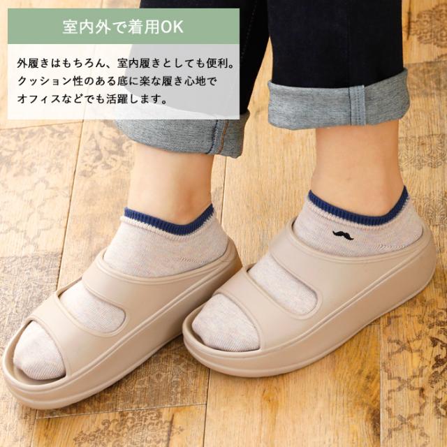 オフィスなどの室内履き、玄関先、庭先など、様々なシーンで着用できます。
