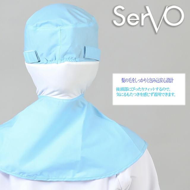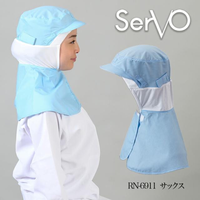 衛生帽子 サーヴォ RN6911 食品工場帽子 サックス 男女兼用 ケープ付き HACCP ハサップ 工場白衣 フード 調理 梱包 検品 サービス業 制服 レストラン ユニフォーム sarvo【メール便送料無料】