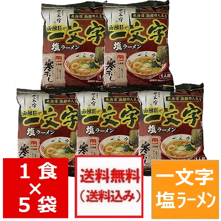 函館ラーメン 一文字 塩ラーメン 送料無料 函館 ラーメン いちもんじ 塩 ラーメン 袋麺 1食入×5袋 はこだて しお らーめん 麺類 ラーメン 乾麺