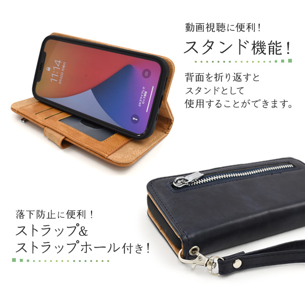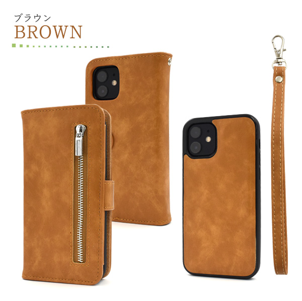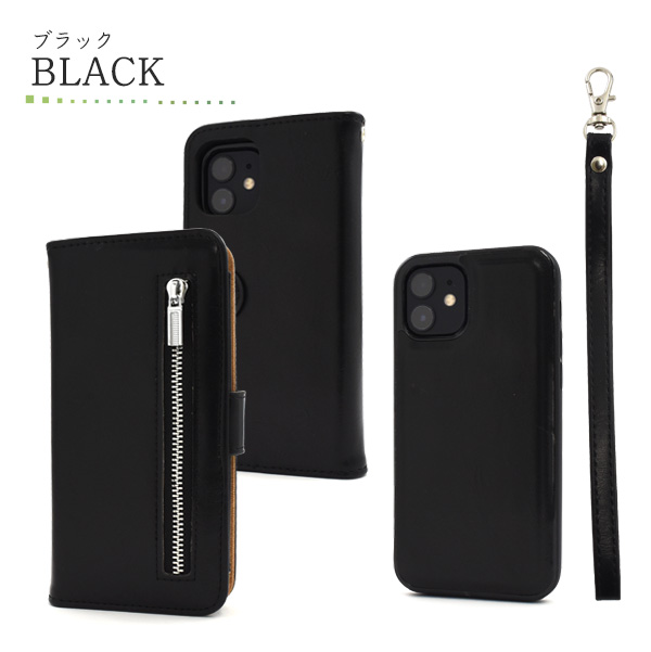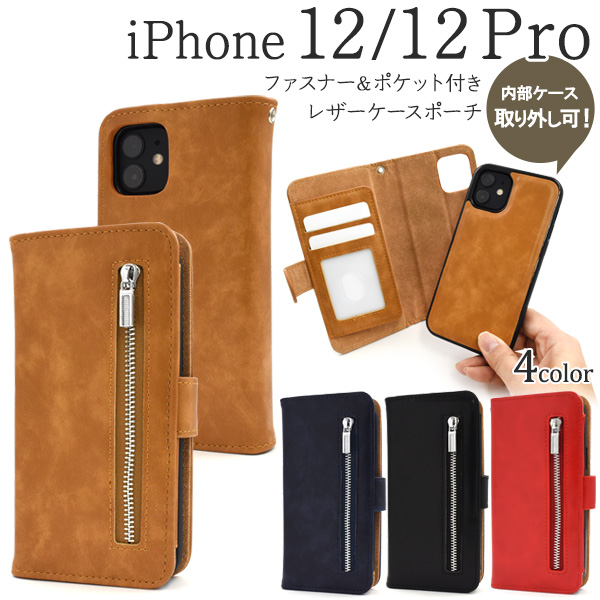 スマートフォンケース iPhone12 iPhone12Pro用 手帳型 ファスナー&ポケットレザーケース 携帯ケース 撮影時に便利 内部ケース 取外し可 スマホケース ベーシック シンプル 装着簡単 上品 オシャレ 可愛い お洒落 スマホカバー SoftBank au docomo おしゃれ アイフォンケース