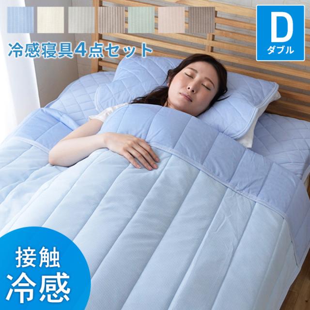 敷きパッド ダブル 寝具セット 寝具カバーセット 冷感寝具 4点セット ひんやりマット ひんやり 敷きパッド+ケット+枕パッド 「レノ」 冷感 セット エコ 新生活 夏用 熱中症