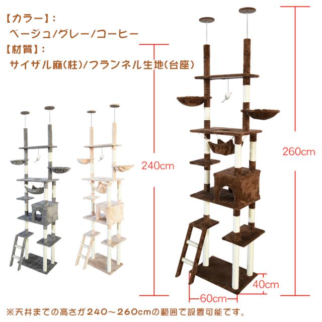 キャットタワー キャットツリー スリムタワー 猫タワー 爪研ぎ 突っ張り 多頭飼い アスレチック 麻紐 キャットハウス pt054