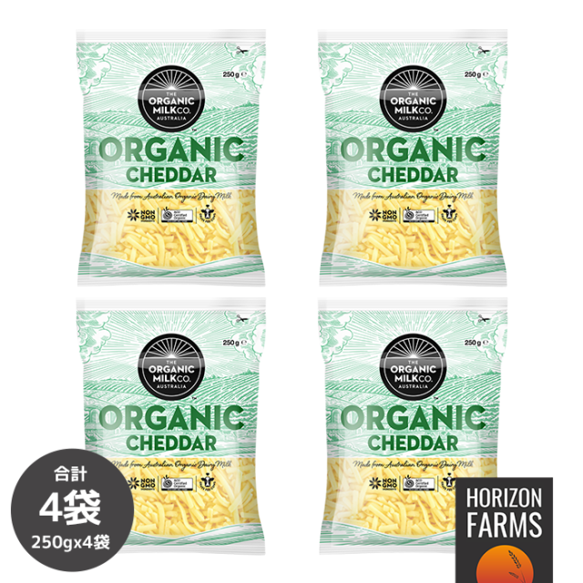 有機 JAS オーガニック 無添加 グラスフェッド チェダーチーズ シュレッド 冷凍 チーズ 250g x 4パックセット 合計1kg ナチュラルチーズ