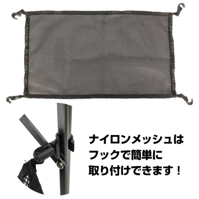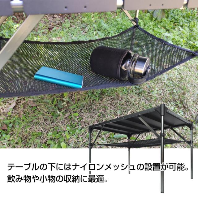 ■テーブルの下にはナイロンメッシュの設置が可能。飲み物や小物の収納に最適!