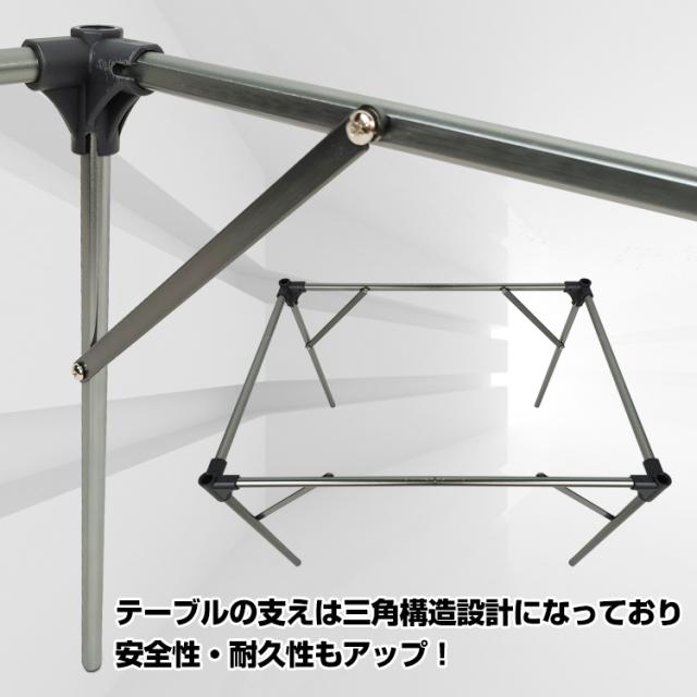 ■テーブルの支えは三角構造設計になっており安全性・耐久性もアップ!