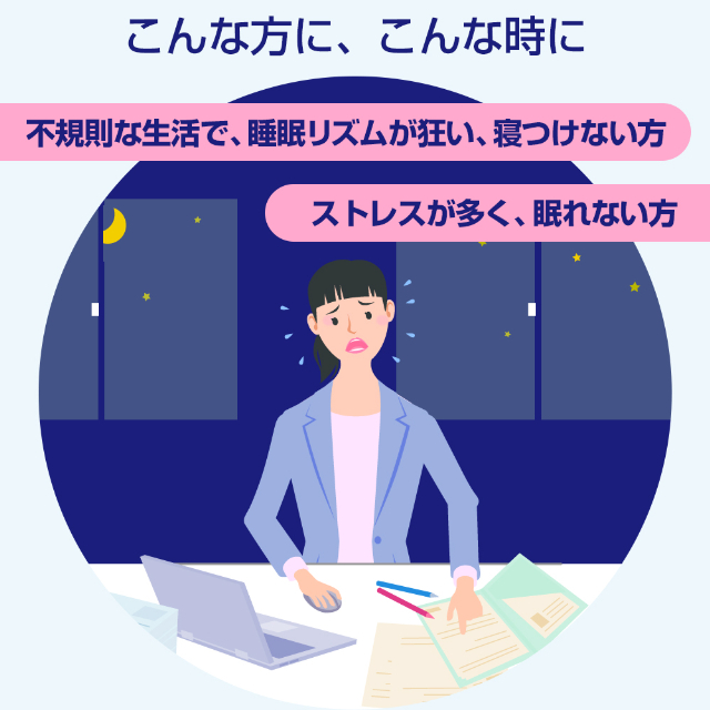寝つきが悪い、眠りが浅いなどの一時的な不眠症状の緩和に