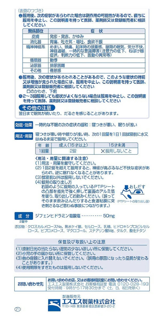 (2) 1回2錠を超えて服用すると、神経が高ぶるなど不快な症状があらわれ、逆に眠れなくなることがあります。