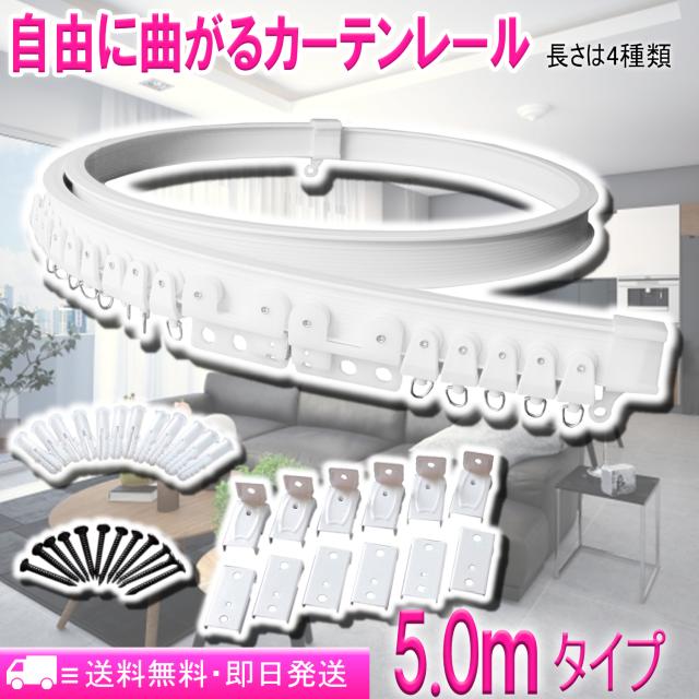 自由に曲がるカーテンレール(5.0mタイプ)出窓や天井、トラックにも取付可能 コロナ対策にも使用可能 部品は全て同梱済み 長さは4種類(2m 3m 4m 5m) 壁付け・天井付けに対応 出窓 間仕切り シングル マグネットランナー付き keihome