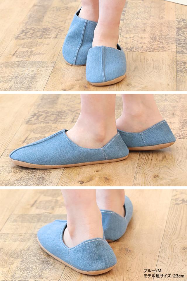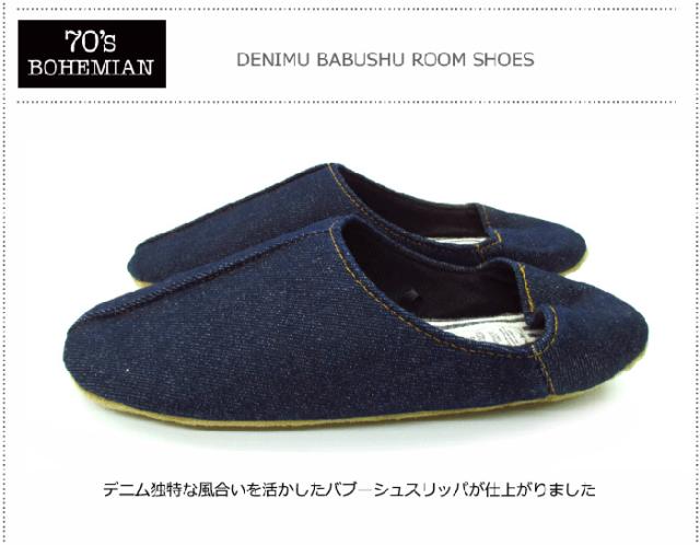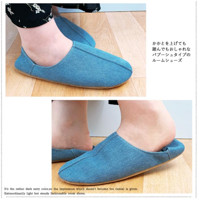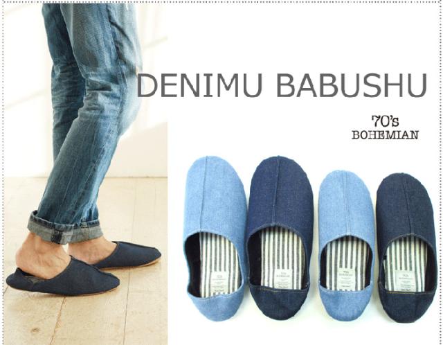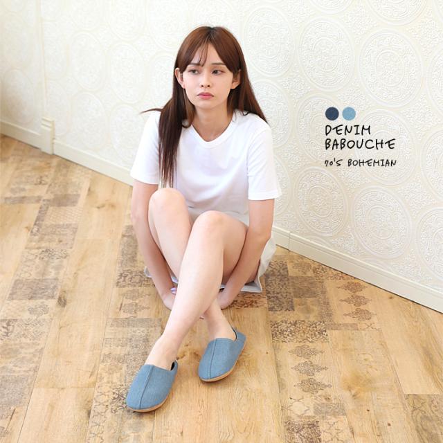 デニム独特の風合いを活かしたおしゃれなバブーシュスリッパ。