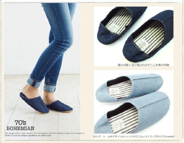 スリッパ おしゃれ デニム バブーシュ 超軽量 軽い ルームシューズ メンズ レディース デニムスリッパ (ok-db7902) かっこ良い アメカジ ストライプ 静音 かわいい 来客用 ルームスリッパ 部屋履き 室内履き 在宅勤務 お洒落 agesugi_snk