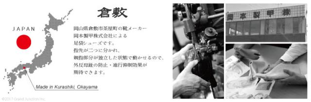 足を科学することから誕生した足袋型シューズ「Lafeet(ラフィート)」。 岡山県倉敷市茶屋町で、職人の手作業によりひとつひとつ丁寧に作られています。