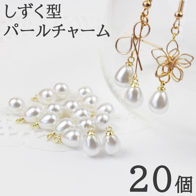 チャーム パーツ パール しずく パールチャーム 真珠 カン付き 20個 アクセサリーパーツ ハンドメイド 手芸 アクセサリー ヒートン チャーム ピアス イヤリング ハンドメイドパーツ 安い 卸 問屋 セット
