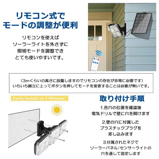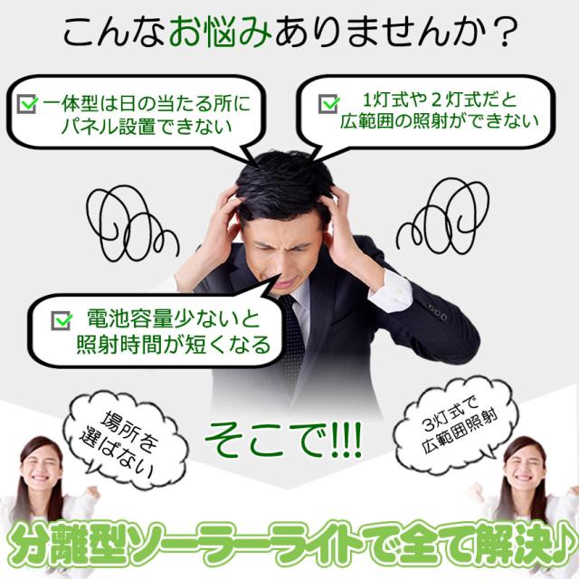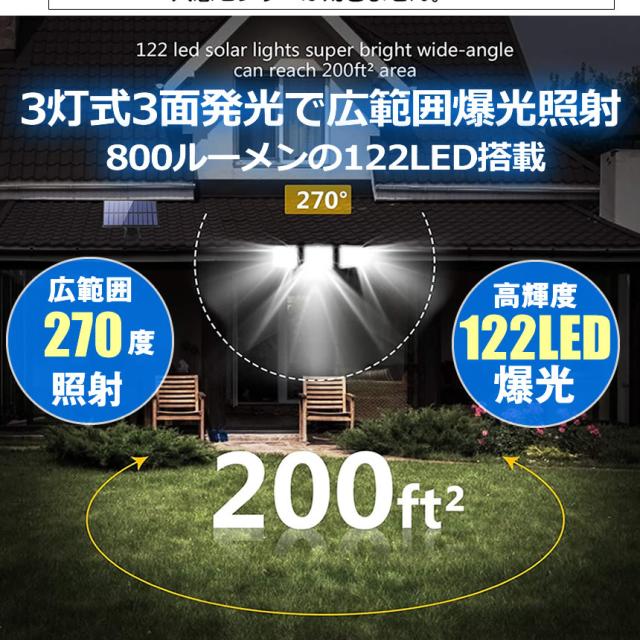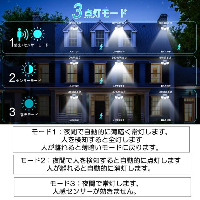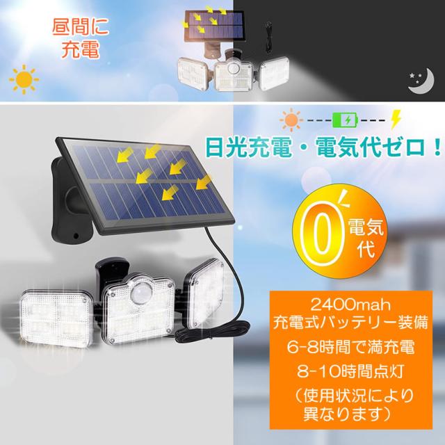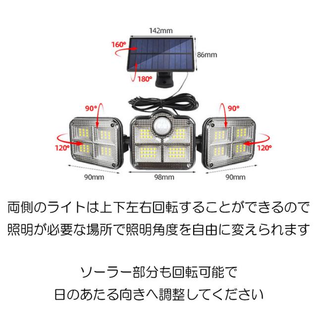 ソーラーライト 屋外 防水 センサーライト ソーラーセンサーライト 分離型 分離 パネル 人感センサーライト 3面発光 LED3モード太陽光発電 360度角度自由調整 IP65 送料無料 SENSARAT