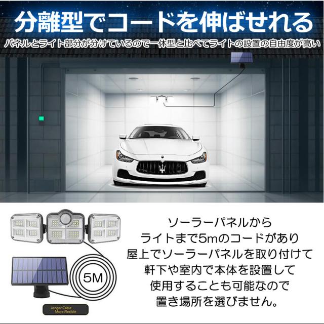 【5mコード付き分離型ソーラーセンサーライト】
