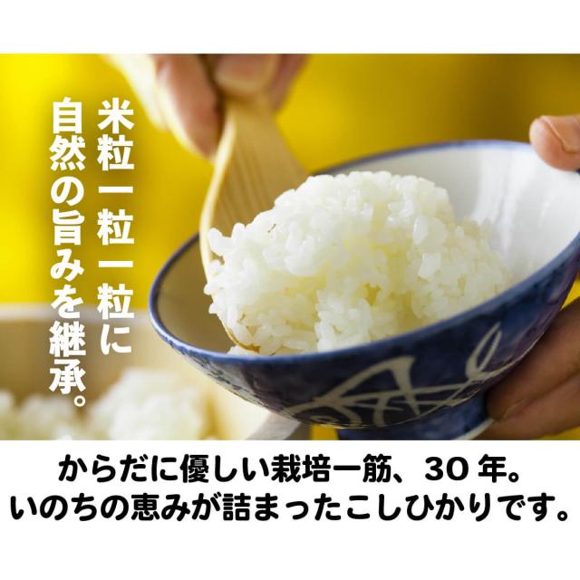 ・30年も前から体に優しいお米の栽培を続けてきた農家さんのコシヒカリです。・有機肥料をふんだんに使った安心安全なお米なので、お子様にもぴったりです。