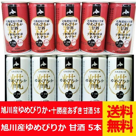 甘酒 送料無料 甘酒 米麹 ノンアルコール 砂糖不使用 旭川産 米麹と十勝産 小豆(あずき)のあまざけ 5本・北海道産のゆめぴりか 甘酒 5本(計10缶) 価格2780円 甘酒 ノンアルコール