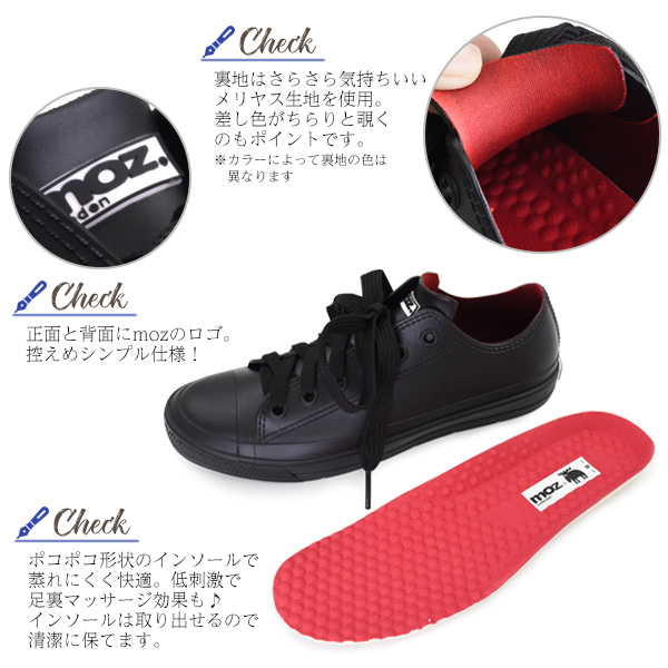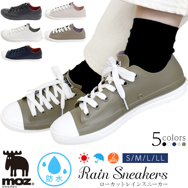 レインシューズ moz 雨晴兼用 ローカット レインスニーカー 通勤 通学 梅雨 雨の日 お出かけ シューズ おしゃれ かわいい 2E S M L LL 靴 紐靴 歩きやすい 靴 レディース スニーカー シンプル カジュアル レディースシューズ 婦人用 在庫処分 特価 セール 女性用 くつ 新生活